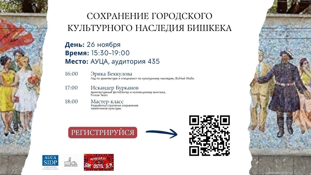 26 ноября в АУЦА состоится мероприятие, посвящённое сохранению городского культурного наследия Бишкека. Участников ждут лекции от специалистов в сфере архитектуры и урбанистики, а также практический мастер-класс по разработке стратегии сохранения памятников культуры.